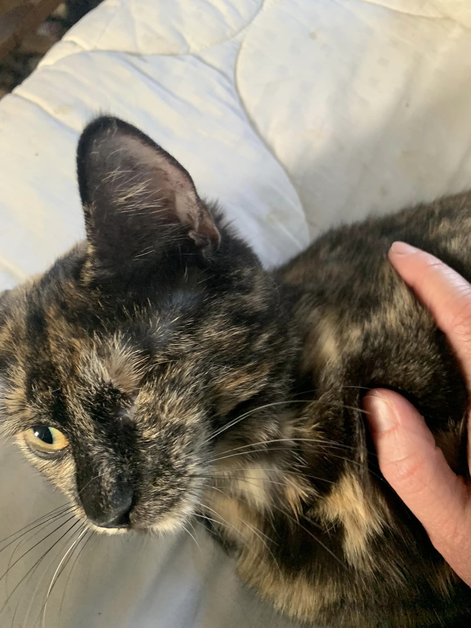 Little Miss Lagartha, my attack beastie, the one who loves to give me love nips, my high energy tortitude gal, has just completed her observation period! She started her journey with only 25% of her thoracic cavity left for breathing, the rest was full of fluid, her eye socket became infected after her FIP diagnosis (which should have been healed from the enucleation, but…FIP). Nancy Schmidt-Moulen was with us every step of the way! We couldn’t have done it without her and Mutian! I’m so happy to know my baby is cured! She started this journey 2.9 lbs. She’s now 7.4 lbs! She’s a completely different girl from where we started in October! I’m so grateful!