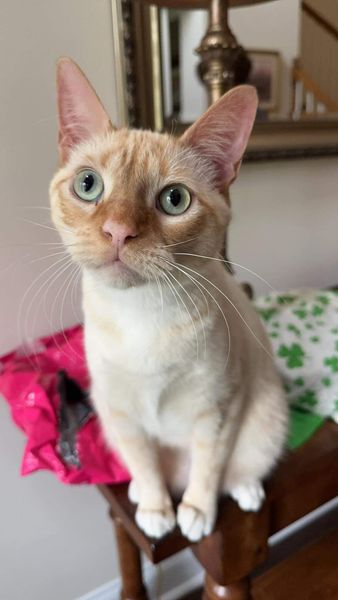 This is Lucky. He is a beautiful, sweet Flame Point Siamese that I fostered, and loved so much that my Mom adopted him. She has never had a cat, and she is a widow. Shortly after she got him, she noticed that he was not eating, and he was very lethargic. (Last picture). As a foster, I was familiar with FiP and our vet suggested another brand of treatment. We went through the entire course of treatment, and he relapsed in just under a week. This time it was much worse, and he could not walk at all. His eyes were constantly moving, he was extremely lethargic and would not eat at all. Our vet was worried he would not make it. We started with Mutian, and within a couple of days, he was eating and running! His dose was very high, and he had to have multiple shots, twice a day for awhile, but he is now officially cured - 90 days off of treatment!! He weighs almost 14 lbs, and you can't tell he was ever sick! We are so thankful for Nancy Schmidt-Moulen for helping us save him!!