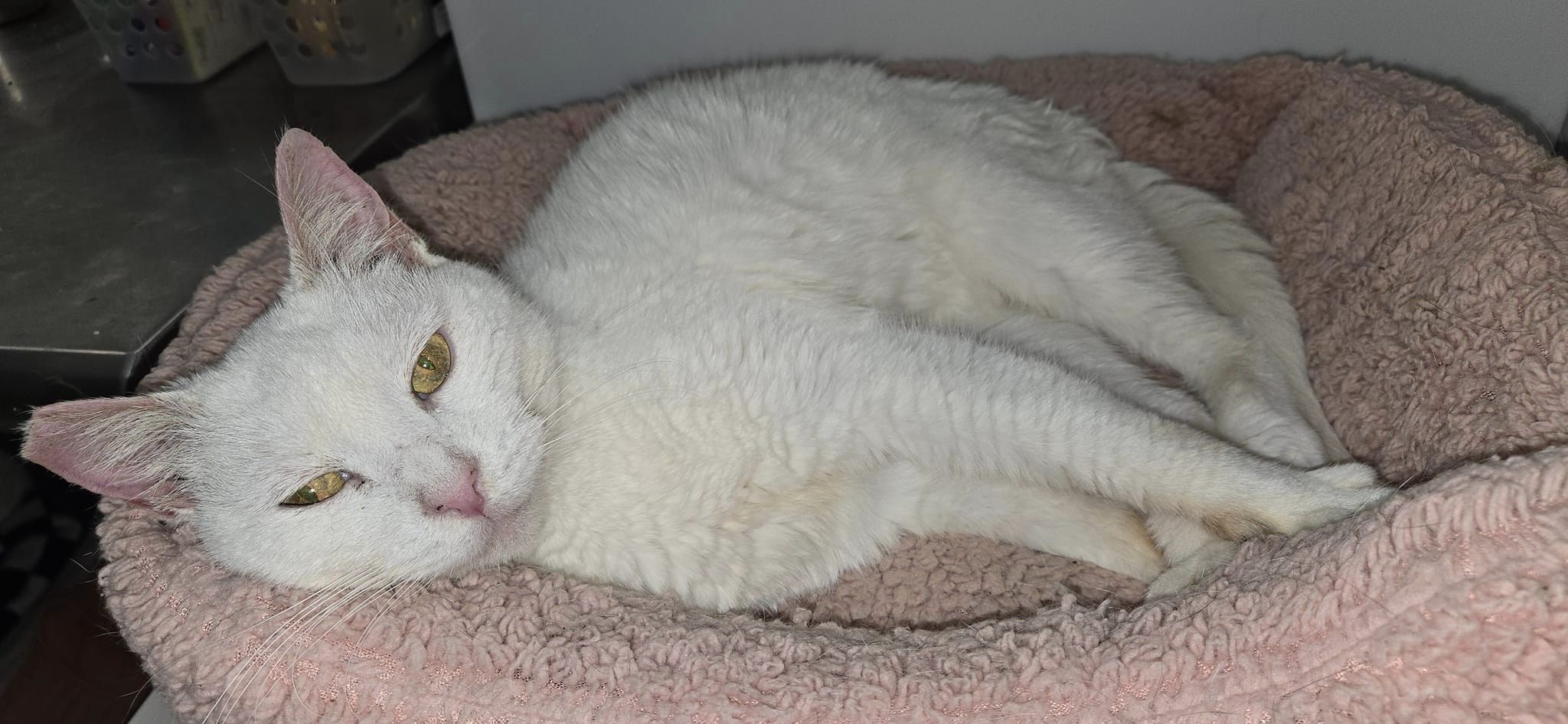 I'm unable to do the whole before and after photo thing because the cats I have been treating can't be handled. Banya was on a life of steroids and always sick, constantly howling in pain trying to eat. The volunteers were able to sneak up on her sleeping and put transdermal steroid cream in her ears daily.