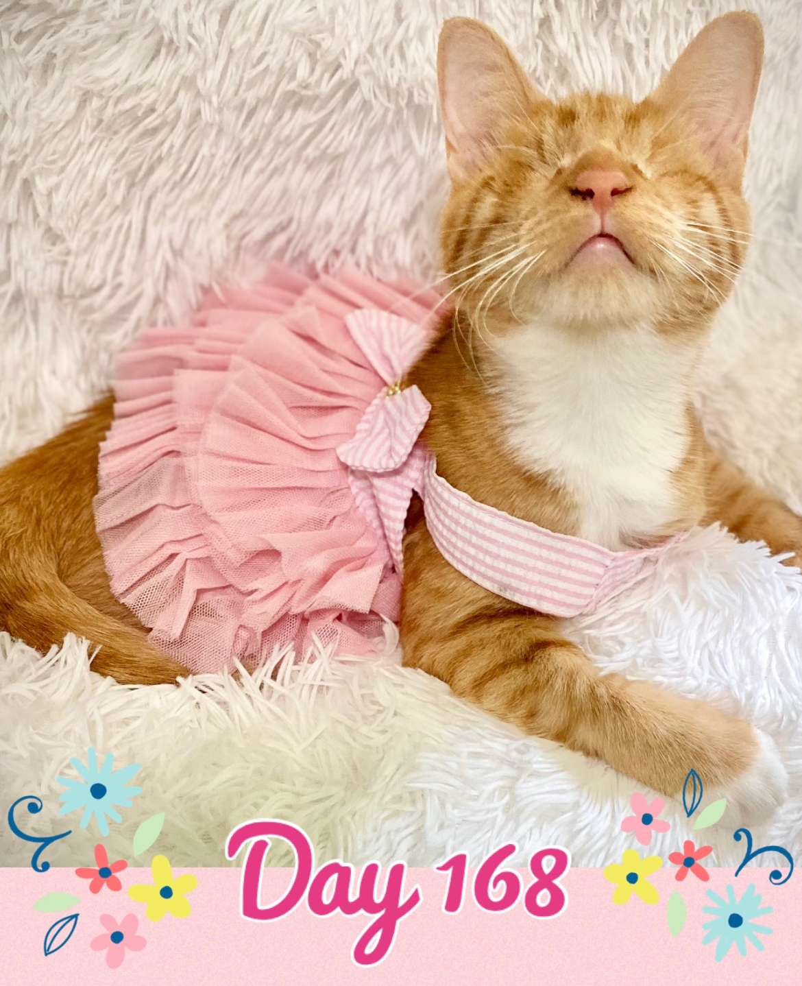 Sadly, in January of 2022, Annie began having unusually high fevers. Test after test revealed no answers. She had also become less active and her appetite seemed to diminish. After multiple vet visits and a second or third set of lab work, it was clear to her Dr. that she had FIP, Feline Infections Peritonitis. This is the only cat disease that has no vaccine, no test, and no approved treatment in the United States. I had never considered treating a kitten with FIP before Annie. Unfortunately, I didn’t realize there actually was treatment and that it worked. It would be very expensive and the journey would ultimately be 168 days. However, after all I had been through with Annie up to this point, I was NOT giving up on her. I was directed to a page that assists with finding an advocate in my area and was quickly educated on how the treatment works, how it’s administered and how much it would cost. I never batted at eye at any of it.