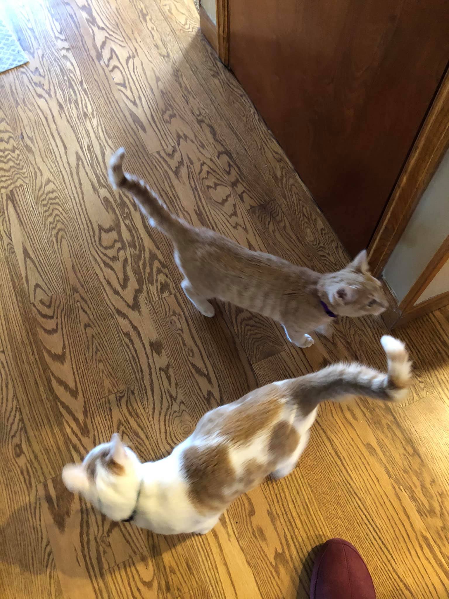 Our baby girl Cymi is released from care after the dose 84!!! Vet gave us days in February. Now the vet calls her a miracle! Looking forward to just letting her be a kitten, not a kitten in care for treatment of a terminal wet FIP. Leaving this daily routine in hope and expectation of many years to come with my sweet girl! Oh she loves to go outside but with the shaved belly she needed a shirt with a hood!!! thank you Nancy Schmidt-Moulen and the Mutian team for giving my baby a chance to live!