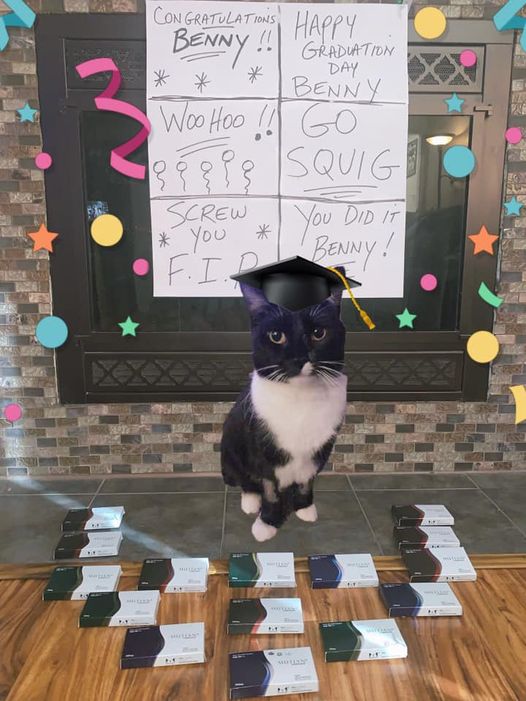 CONGRATULATIONS BENNY !!!!!!!!! After 85 days of Mutian capsules and a perfect report from the Vet about 3 hours ago, our boy Benny has GRADUATED!!!!!! We are blessed to have found this Magical Mutian and blessed to have the Love and Support of everyone in this Group !!! Tomorrow we start our new 84 day journey of Observation !!!! I wish everyone all the success in the world with all of your babies !!!! God Bless and ...... F&$#% F.I.P. !!!!!!