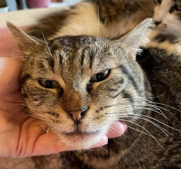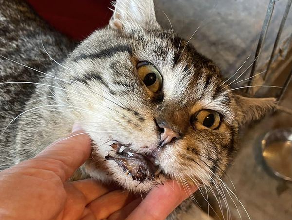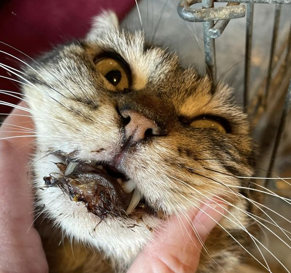 This is my foster cat, Hoss, who took his last dose of Mutoral 1 last evening. Hoss is a former street cat that is, remarkably, FIV/FeLV negative. He’s lived with me for not quite a year. I have to admit, I was a skeptic, but Hoss’ co-foster,Anne Fauset, is a true believer and sponsored the entire cost of Hoss’ course of treatment. She didn’t want Hoss to have to live the rest of his life with his vet’s recommendation of FME. The first 2 photos are on the first day of treatment. The black crust on his lips is dried blood that he would fight when trying to clean away, even with a warm compress (due to pain). The last photo was after his 6th dose of Mutoral 1.Positive changes in Hoss’s appetite and behavior were already apparent. I really never dreamed that 2 weeks could make such a difference. But, I switched from skeptic to true believer after just 6 doses. That’s when I knew Mutoral was already working. Hoss had definitely turned a significant corner at that point. I fully expect that the full 12-week treatment protocol will result in complete remission. Thank you for taking the time to read about Hoss’ Mutoral journey!