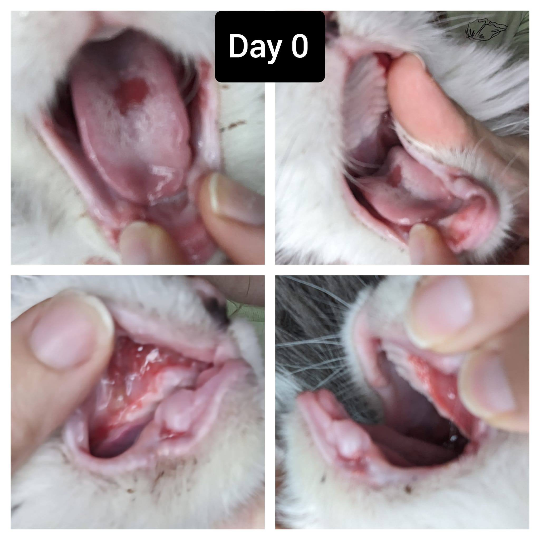 I wanted to share my foster Mr. Toothless who is our rescue's first candidate going through this treatment. He is an approximately 5 year old male who was found near death in the Texas heat with only 1 incisor in his gummy mouth. This was last summer. He had been released by our local shelter as a "barn cat" after they performed a FME.